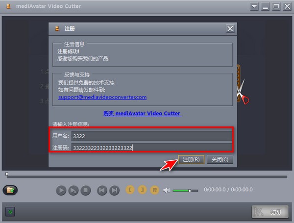 3、以上操作都完成后启动mediAvatar Video Cutte,随便填写注册信息,然后点击注册