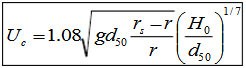 d50—河床的中值粒径(m);H0—行进水流水深(m); rs,r分别为泥沙与水的重度(KN/m3),g为重力加速度(m/s2).Ucp的计算应符合下列规定: