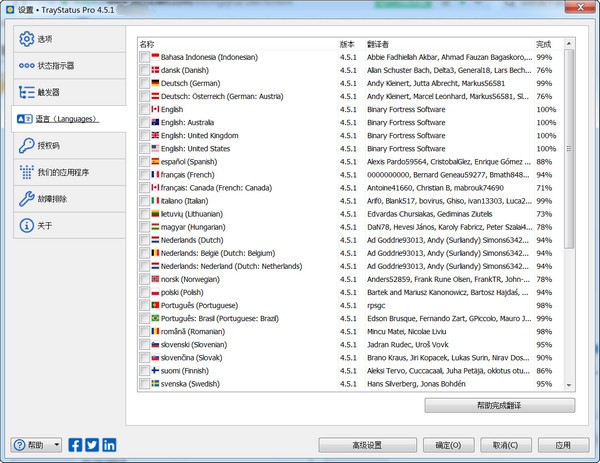 TrayStatus 被翻译成许多不同的语言,便于使用。