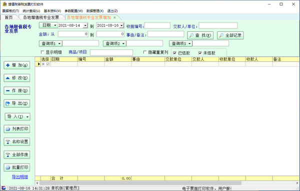 软件可以为企业的财务人员减轻许多工作负担,具备了多种发票相关的功能,用户可以通过软件设计出想要的发票效果并将其打印出来,具有超高的自由度,同时提供了统计功能。