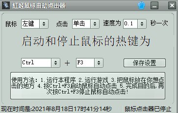 当我们要用鼠标持续性的进行一些枯燥无聊的重复性操作时,就可以直接利用这款红姬鼠标自动点击器来帮助你自动操作,该软件支持设置快捷键,并且可以支持左右键设定,使用方法也很简单,具体操作步骤小编已在下文说明,不管是用于游戏还是办公,都很非常方便。