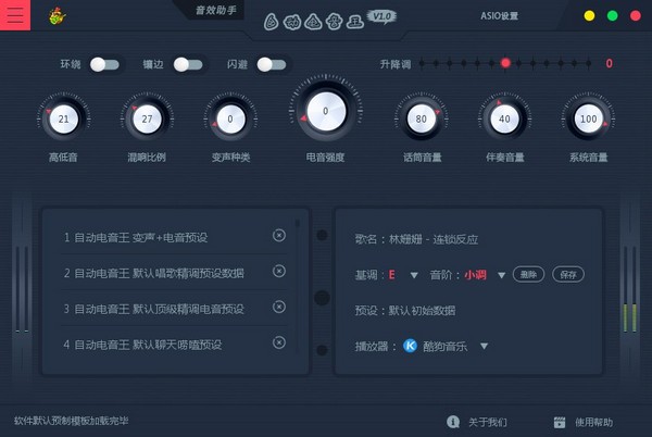 所有的音效预设支持一键秒切,如一键闪避,一键环绕,一键镶边效果.一键变声,一键电音等