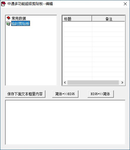 中通多功能超级剪贴板是款容量很大的多功能剪贴板工具,软件主要分为常用数据和临时剪贴板两块,常用数据最多可保存超过一万条数据,临时剪贴板可保存30条不同内容,基本上可以满足用户的需求,软件不用的时候就可以把它隐藏起来,不会影响其它操作。