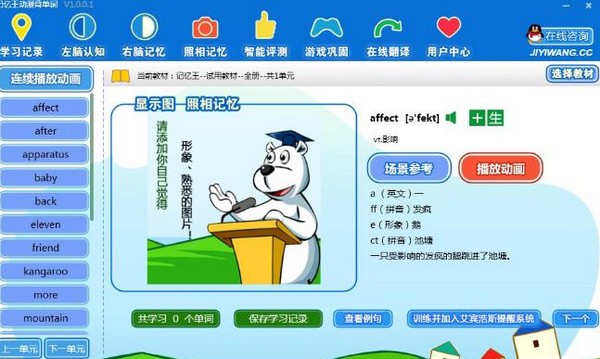 1、集动漫+游戏+全脑记忆开发+抗遗忘复习+智能测评为一体系统的高效英语单词学习工具。