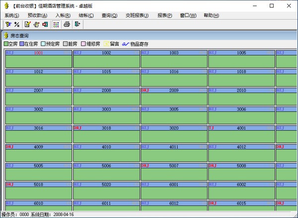 3、房态图的监控,更加直观的浏览所有房间的情况,非常方便操作人员了解酒店的时时状态。