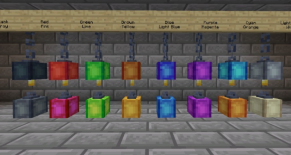 我的世界1.17.1灯笼皮肤合集MOD中包含了非常多的人都在使用不同款式的灯笼皮肤,可以为我的世界增添一系列新的灯笼外观,玩家使用之后就能获得这些灯笼了,什么颜色都有,每个灯笼都有独立的合成配方,玩家可以自行制造出来,并将这些灯笼放置在自己的房间中作为装饰,效果十分不错哦!