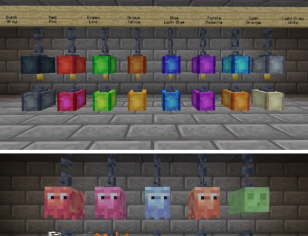 想要让我的世界中的道具变得更加丰富多彩吗?快来试试小编带来的这款我的世界1.16.5灯笼皮肤包MOD吧!补丁的作者在游戏中制作添加了一系列好看的灯笼皮肤,玩家现在可以获得更多造型和颜色的灯笼,不同的灯笼具有独立的合成配方,玩家可以制作并用来装饰自己的房间,效果如下图。