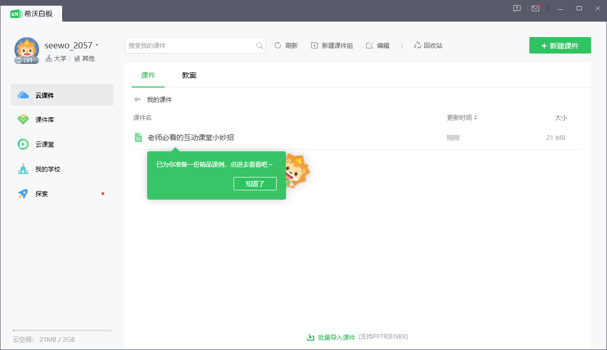 上线“课件库”功能,1000+份学科精品系列课件随时下载,并有5000+课程视频、30万+题库,800+数学画板,仿真实验等课例资源。