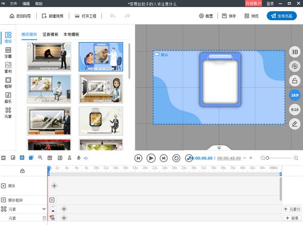 选择模板并导入,选预设模板、添加图片文本等内容