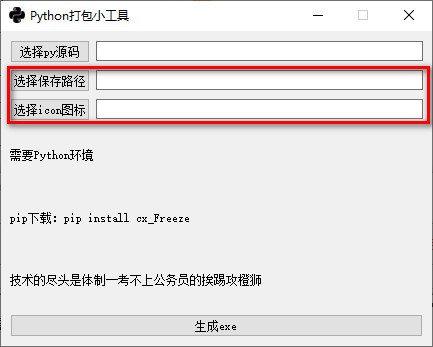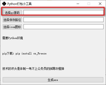 python打包小工具是吾悦网友制作的非常多的人都在使用人用的一款快速python打包成EXE的工具,需要python环境,但是用pyinstaller的用户可以忽略了,软件操作简单,给你的后期程序开发带来便利。