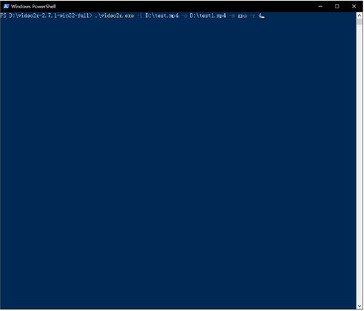 .⁄video2x.exe -i D:⁄test.mp4 -o D:⁄test1.mp4 -m gpu -r 4