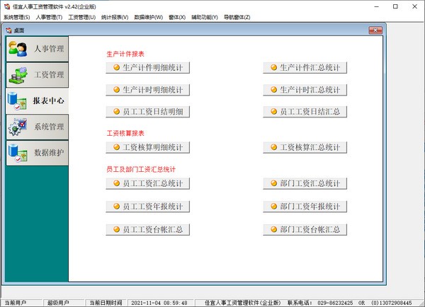 完善的工资管理,包括计件工资、计时工资、员工津贴,员工借款、奖金放发等的管理;