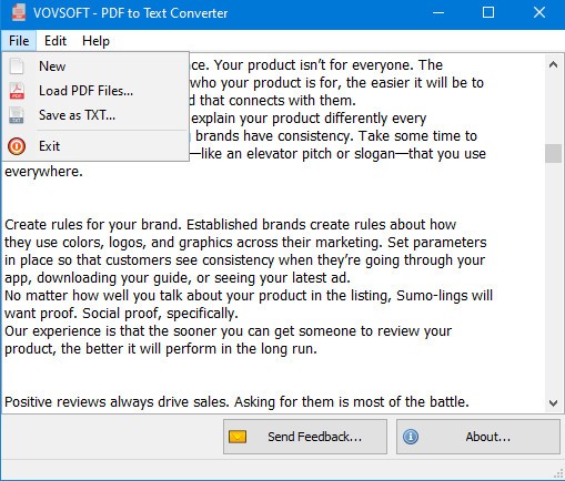 它们的所有文本都会自动提取并显示在主窗口中,同时还为您提供了在需要时进行更改的可能性 - 您可以将其视为 PC 上的任何其他文本文档。您可以剪切、复制和粘贴单词、句子或段落。当您完成数据更改并且对结果感到满意后,您可以将其另存为 TXT 并将其存储到任何文件夹中。