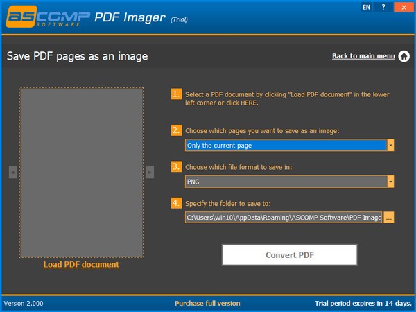 PDF Imager 的特点是其简单直观的界面 - 您可以在转换 PDF 时节省宝贵的时间!