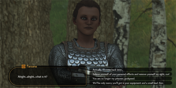 骑马与砍杀2囚犯互动MOD能够在骑马与砍杀2中添加一个新的机制玩法,补丁的作者“CrustyJohnson”对游戏中的囚犯机制进行了修改,玩家使用之后就可以获得全新的囚犯互动模式,现在玩家能够和囚犯进行对话,并在扒光他们身上的装备后将其释放,增加了游戏的可玩性,提升乐趣。