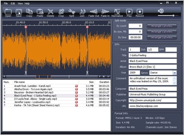 多种易于使用的工具提供了一种将MP3文件切割成指定数量的部分或指定长度或大小的部分的快速方法。静音检测器可以将有声读物分成章节。CUE拆分器可让您自动将DJ组拆分为多个曲目。更多关于Mp3切割机...
