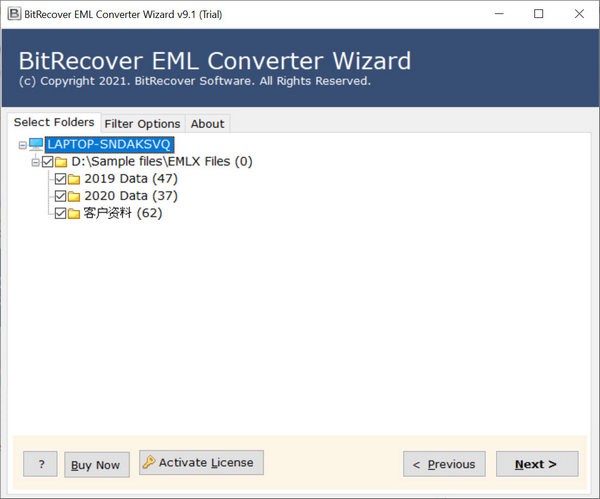 BitRecover EMLX 转换器向导允许通过允许选择性转换所需文件夹来节省必要的时间。选择一些特定的文件夹进行转换,并以您的新文件格式获取所需的邮箱项目。如果用户只想转换非常重要的的 EMLX 文件而不是所有软件插入的 EMLX 文件,这会很有帮助。