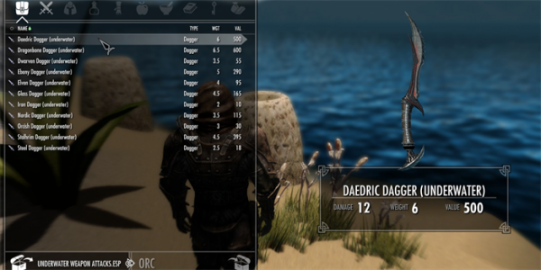 上古卷轴5重制版水下武器组MOD能够对上古卷轴5重制版中的武器道具进行扩展,补丁的作者“DMagnus”在游戏中制作添加了一系列全新的武器道具,玩家使用之后就能获得许多新的水下武器,这些武器全部可以在水下进行攻击,一共包含11件,种类丰富,有魔神、龙骨、矮人、乌木等等。