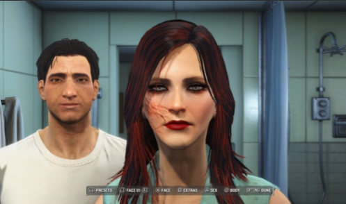 辐射4讲述的是一个主角在末日世界下冒险求生的故事,过程困难重重,玩家们需要操控主角面对这些挑战迎难而上,可玩性相当不错,本站今日提供的辐射4Looksmenu预设MOD是为该游戏制作的一个人物类补丁,使用后将在游戏里添加一名喜欢枪的懒惰、从容的女性,效果如下图。