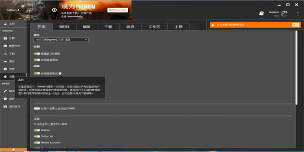 界面Vortex具有完全可定制的界面,可让您快速轻松地访问工具并管理您的游戏、插件、下载和保存游戏。