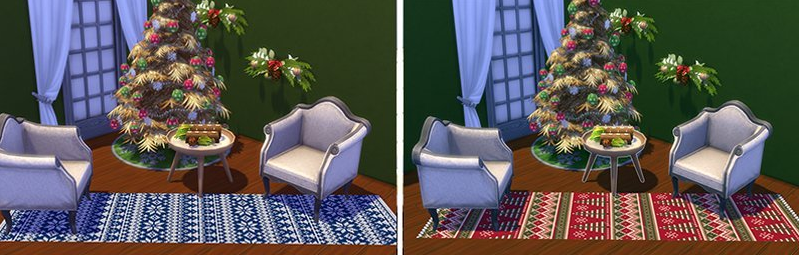 圣诞节的节日氛围感很非常重要的,非常多的人都在使用小伙伴都会在圣诞之际在自己的家里加入各种圣诞元素,比如圣诞树、圣诞画、圣诞娃娃等,今天带来的这个模拟人生4圣诞地毯MOD就是非常多的人都在使用人用的一款非常好看的圣诞风格地毯,效果如下图所示,有多种图案可以选择,每一种都很好看哦~