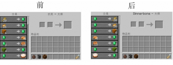 我的世界1.16反向交易MOD是一个便利功能mod,可以为喜欢我的世界的玩家们带来一个非常实用的新功能,玩家打上补丁之后就能在游戏中进行反向交易的操作,现在大家能够和村民进行反向交易,通过重命名他的名称就能实现,非常方便玩家更加轻松地获取到更多的资源道具,页面如下图所示。
