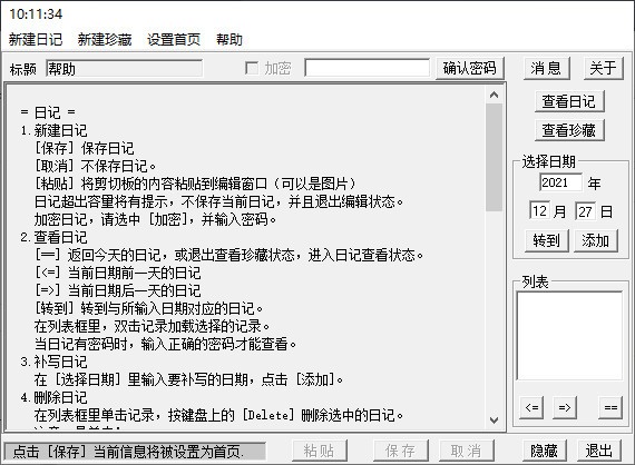 在心情日记上你可以将自己生活中的趣事、秘密、快乐、难过等都记录下来,还支持加密功能,只需要选中 [加密],并输入密码即可,需要查看加密日记的时候输入正确的密码才能查看。