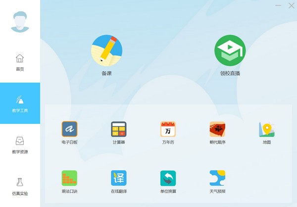 陕西教育人人通客户端是款轻量级的线上教学辅助工具,不仅让老师上课更加便利,同时也让学生的学习效率变得更高了,软件主要分为三大板块,分别是教学工具、教学资源和仿真实验,其中教学工具中包含了电子白板、计算器、万年历、地图、在线翻译、单位换算、天气预报等。