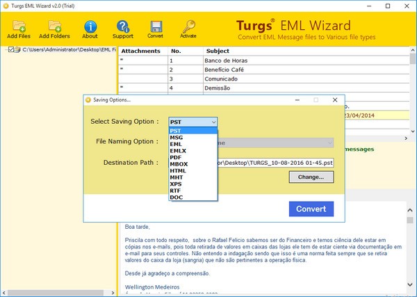 即时EML转换多种格式——PST、味精、MBOX,等等。