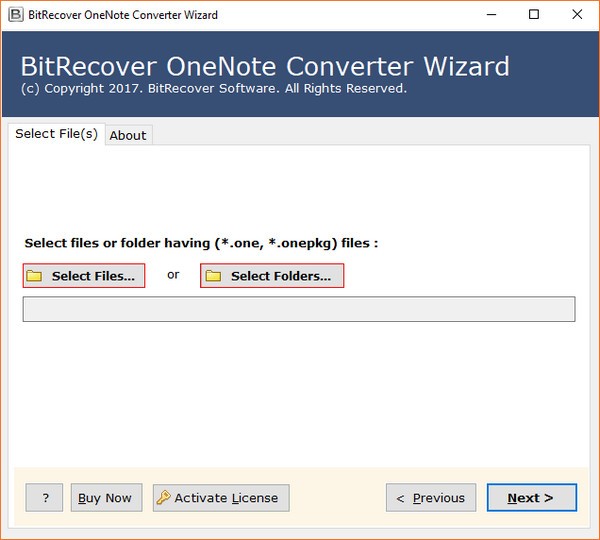 BitRecover OneNote Document Converter 能够一次保存多个 OneNote 文件,因此用户可以节省他们在此过程中花费的宝贵时间和精力。OneNote 文件转换器工具通过提供 2 个用于快速转换 OneNote 文件的选项来帮助用户进行 OneNote 笔记本转换。用户可以使用“选择文件”或“选择文件夹”选项来选择 OneNote 文件或具有无限*.onepkg、*.one 文件的文件夹进行转换。