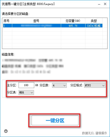 操作简单,一键分区