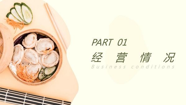 这是一套蒸饺背景的餐饮行业工作总结PPT模板,共24页;