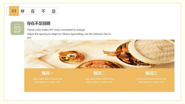 一年即将结束的时候,各行各业都会开始进行年终总结,回顾这一年的经营情况,反思不足以及提出明年的目标,这款2022年餐饮行业年终总结PPT模板就是一版非常适合餐饮行业使用的年终工作总结汇报PPT模板,一共有24页,内置了多种美食插图装饰,具体样式可以参考下文展示。
