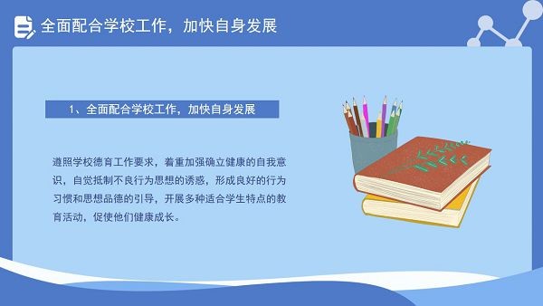 班主任工作总结PPT模板共有21张,包括五个方面,大家可以按照自己的想法来编辑模板中的内容,以表达自己的所思所想。