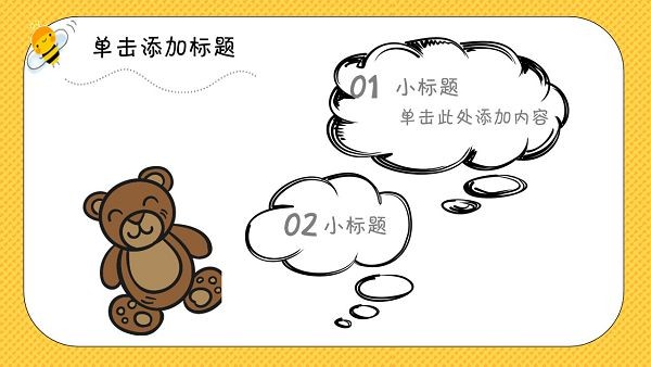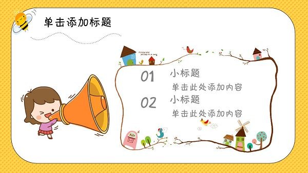 儿童节主题PPT模板适用于一些儿童类活动使用,风格童趣活泼,明亮的色彩可以吸引孩子的注意力,模板为PPT格式文件,大家可以直接下载源文件进行套用。