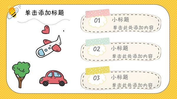 儿童节主题PPT模板不仅可以在儿童节的时候使用,平常的一些充满童趣的儿童类活动都可以用它来制作PPT,模板中一共包含24页幻灯片,里面使用了卡通小飞机、气球、小熊的图案,看起来非常可爱,里面的文字内容都是可以自行修改的,喜欢的话就快来下载吧~