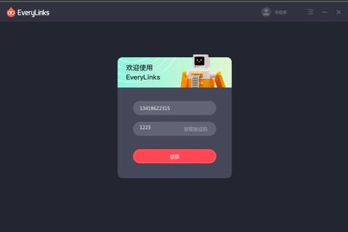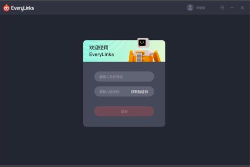 从EveryLinks官网下载windows客户端并安装,启动进入登录界面,输入手机号获取验证码后,输入验证码进行登录。