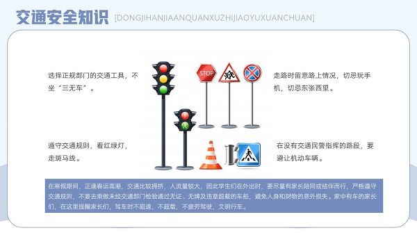 版权声明:寒假安全教育主题班会PPT模板所展示的资源内容均来自于第三方用户上传分享,您所下载的资源内容仅供个人学习交流使用,严禁用于商业用途,软件的著作权归原作者所有,如果有侵犯您的权利,请来信告知,我们将及时撤销。
