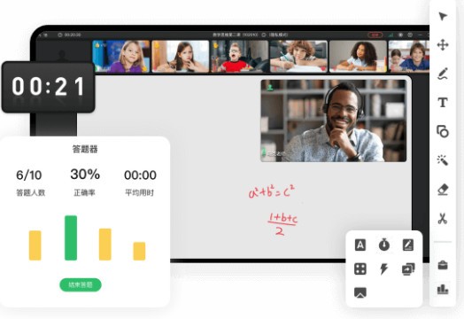 答题卡、计时器、投骰子、抢答器、答题纸等多种师生互动工具,提升沉浸感和教学效果