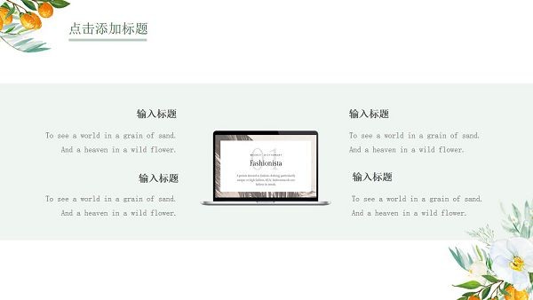 小清新通用ppt模板,模板内里面一共有十五张,文艺风格,没有明确的主题,标题有四个板块,大家可以根据自己的需要任意定义,不管是用来做工作总结汇报还是课件等都非常不错,源文件为.pptx格式,下载后解压即可打开自由编辑使用。