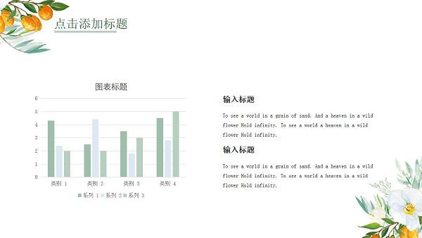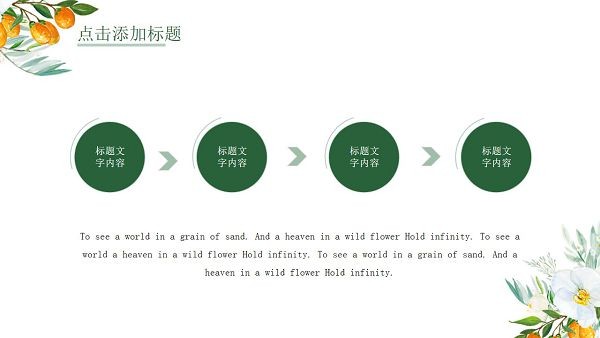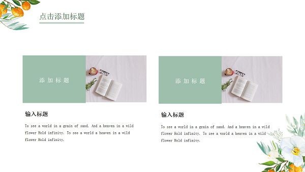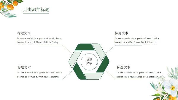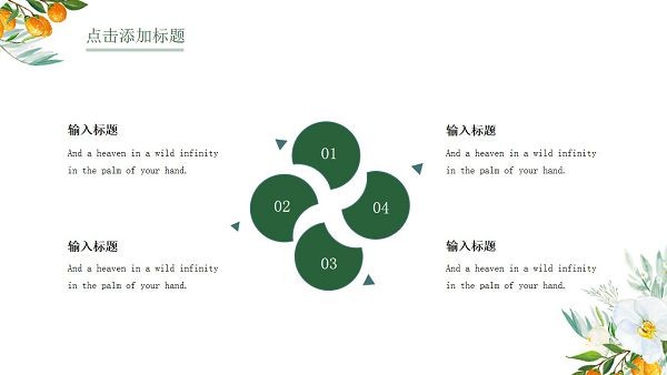 小清新通用PPT模板共十五张,采用绿色文艺风,有四个板块,用户可以自行增加或删减