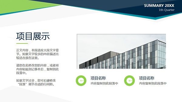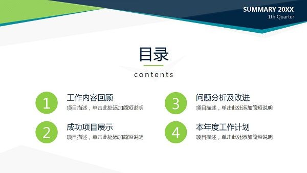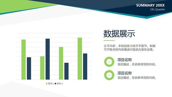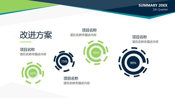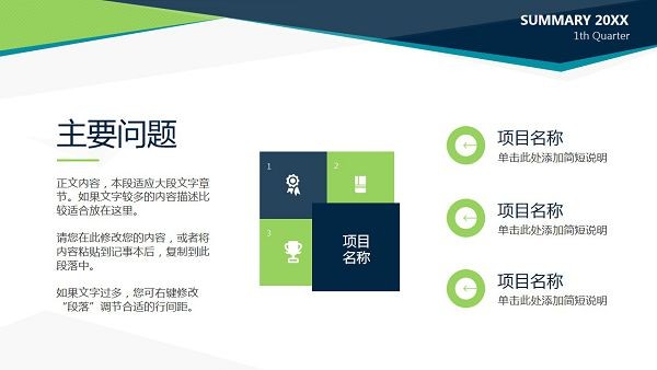 简约几何风总结报告PPT模板很适合应用在工作总结汇报中,这是一个用来分析任务项目完成情况的范文模板,文档是ppt的格式,采用了简约几何图形的设计风格,页面十分美观大气,用户通过软件可以快速制作出完善的项目总结报告,并很好地进行展示,为用户的工作提供了许多便利。