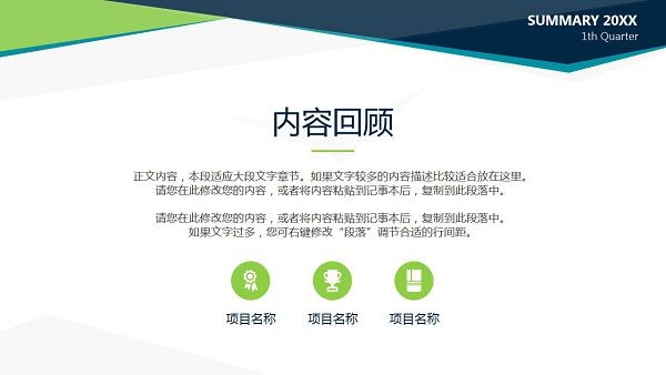 版权声明:简约几何风总结报告PPT模板所展示的资源内容均来自于第三方用户上传分享,您所下载的资源内容仅供个人学习交流使用,严禁用于商业用途,软件的著作权归原作者所有,如果有侵犯您的权利,请来信告知,我们将及时撤销。