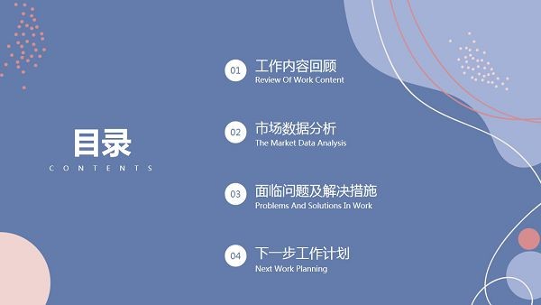 马卡龙的色调总会给人一种清新治愈的感觉,所以相信这款马卡龙配色工作总结汇报PPT模板非常多的人都在使用小伙伴都会喜欢,你可以用这款模板来制作总结汇报、工作报告之类主题的PPT文档,模板中的内容主要包括工作内容回顾、市场数据分析、面临问题及解决措施、下一步工作计划。
