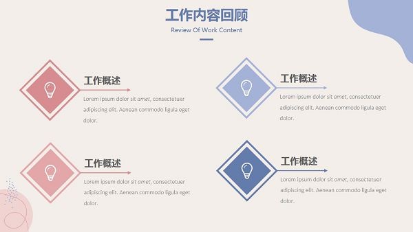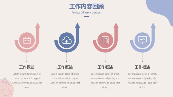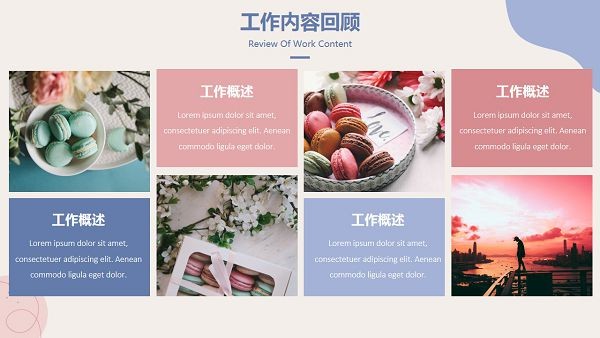 马卡龙色系的视觉效果十分舒适,用作为工作总结汇报PPT的主色调非常不错,喜欢的小伙伴们可以直接下载这款模板使用哦~