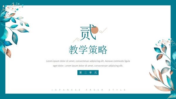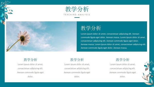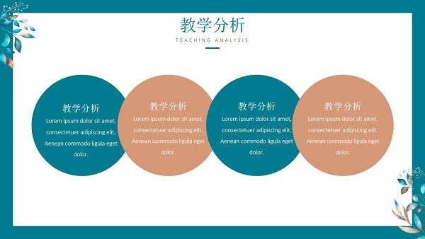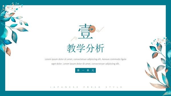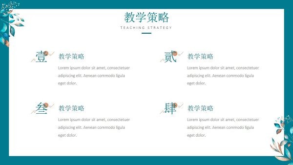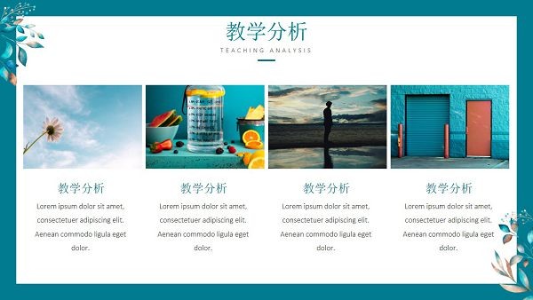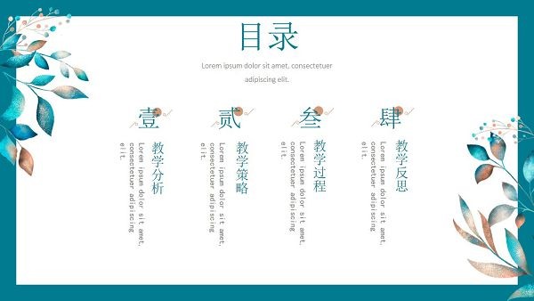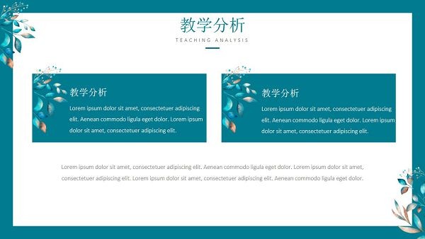 孔雀蓝是一种很高级的颜色,用来作为教育教学PPT的主色系非常不错,如果你也喜欢该色系的话,就不妨来下载这款孔雀蓝配色教学通用PPT模板,视觉效果相当养眼,内容包含教学分析、教学策略、教学过程以及教学反思几个板块,具体样式可以参考下文图示~