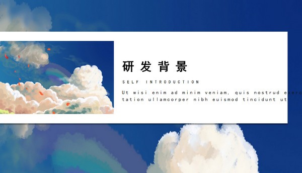 彩色唯美大气商业计划书PPT模板,这款PPT主打的是美好治愈的小清新画风,采用了蓝天、白云、彩虹图案装饰,具体样式可以参考下文中的模板预览图片,内容包含研发背景、新技术展示、成果展示以及发展前景几个板块,支持用户自行修改,大家可以下载源文件直接套用~