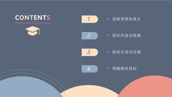 简约开题报告答辩ppt模板,这款PPT在设计上没有非常多的人都在使用好看的图案装饰,风格偏简洁直观,里面的内容包含了选题背景和意义、研究内容与思路、研究方法与过程以及预期研究目标几大方面,大家也可以根据自己的想法进行修改,有需要的话就来下载吧~