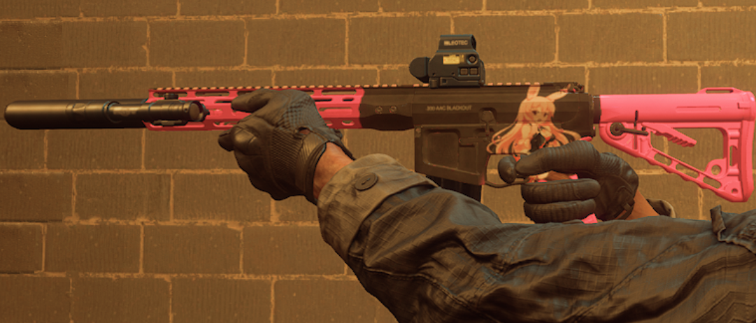严阵以待SBR300黑衣兔女郎皮肤MOD,这是给游戏中的SBR300步枪制作的一个外观美化类补丁,使用后就会给这把枪的枪身上绘制上一个二次元兔女郎立绘,具体效果可以参考下文图示,看起来非常可爱,喜欢的玩家们快把它下载进游戏开始修改吧~