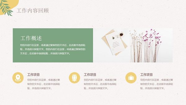 在某项工作完成或者告一段落时,上级一般都会要求我们对自己的工作内容进行总结和汇报,这时可以通过小编带来的这款夏日柠檬茶主题工作总结汇报PPT模板进行操作,这是一个PPT演示格式的文档模板,采用了小清新风格的设计,带有夏日柠檬茶元素图案,帮助用户更好地汇报工作总结。